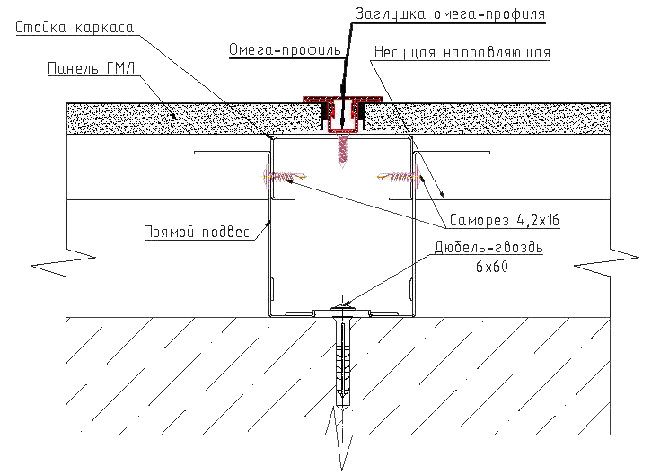 Гипсометаллические панели (ГМЛ) креплением через Омега профиль
